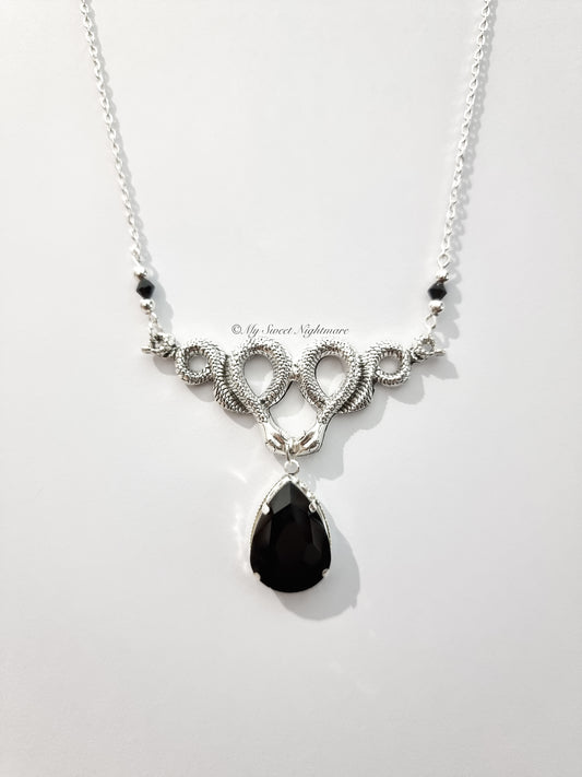 "MEDUSA" collana gotica con serpenti e gemma nera a goccia