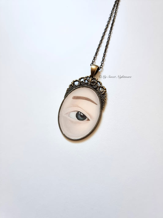 Collana in stile vittoriano con miniatura dipinta ad olio "L'occhio dell'amante"