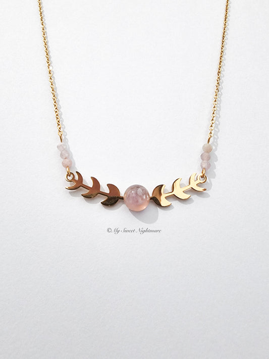 Collana wire con quarzo fumè qualità AAA in acciaio dorato e luna crescente