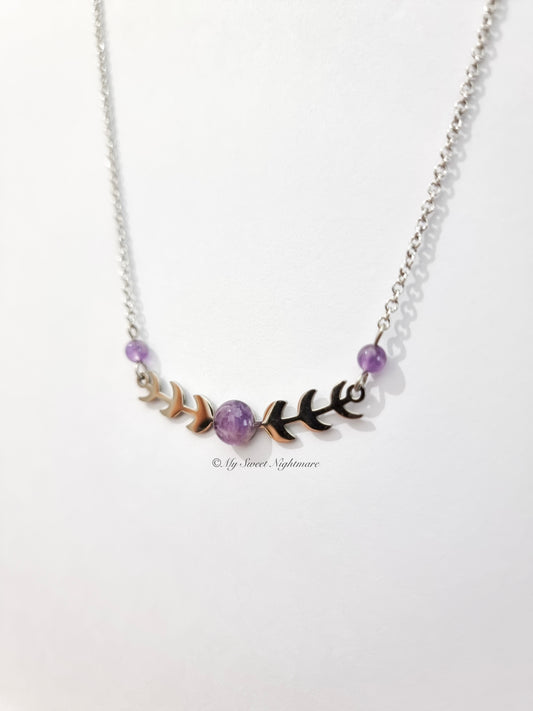 Fasi lunari in acciaio oro con ametista e tormalina rosa