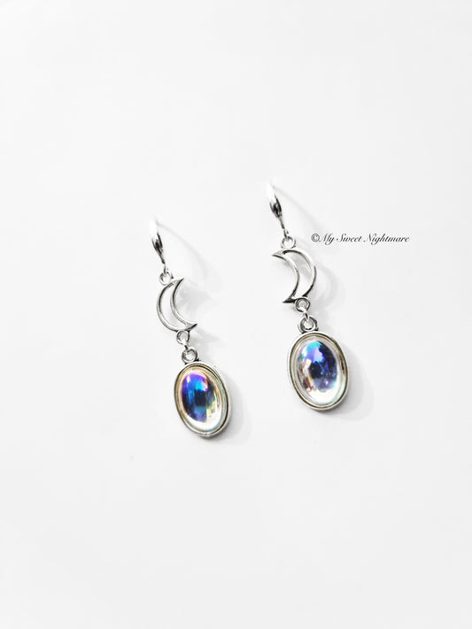Collana multifilo con pentacolo, luna e pietra arcobaleno