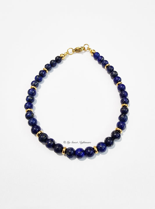 Bracelet in AA quality Lapis Lazuli and gold steel