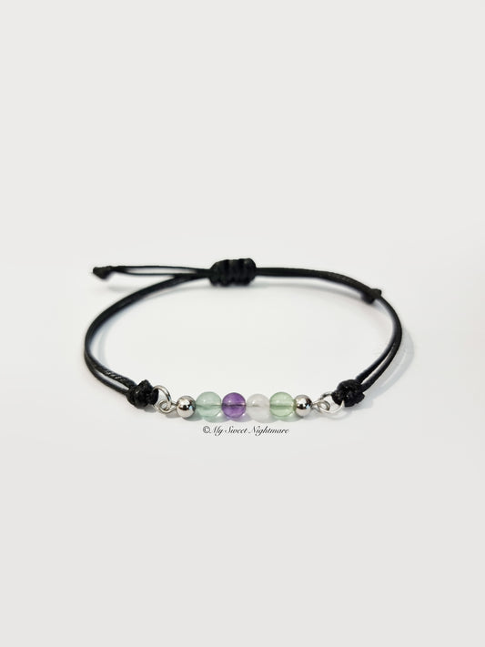 Adjustable bracelet in natural Fluorite and black cord