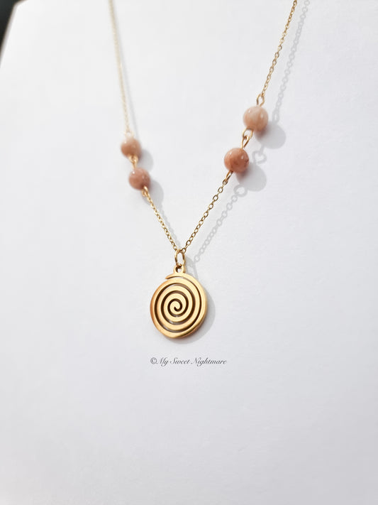 Necklace with golden spiral in steel and Sunstone
