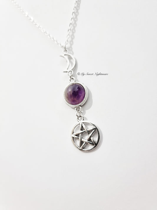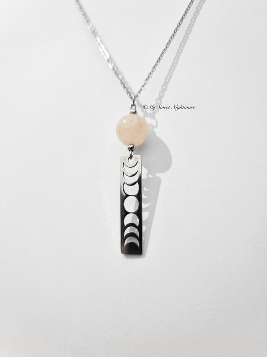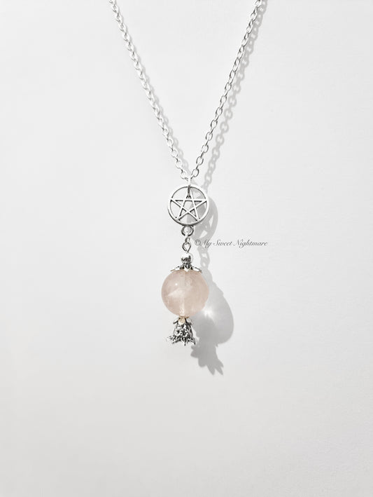 Rose Quartz Crystal Ball and Pentacle Necklace