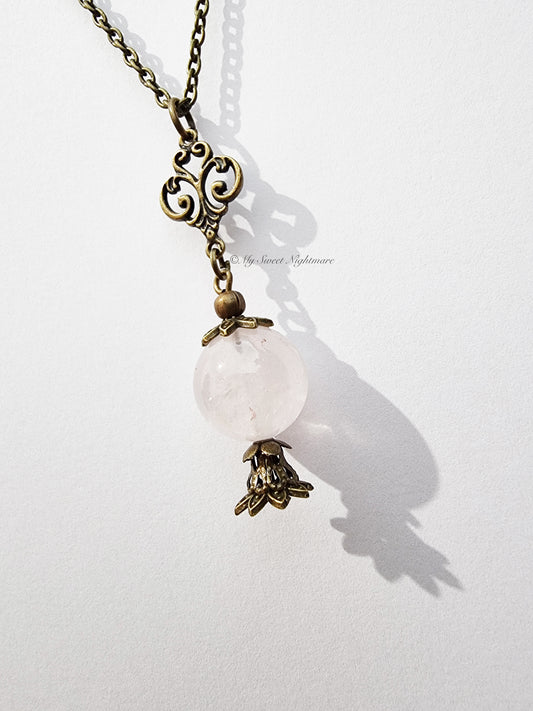 Victorian Bronze Necklace with Rose Quartz Crystal Ball