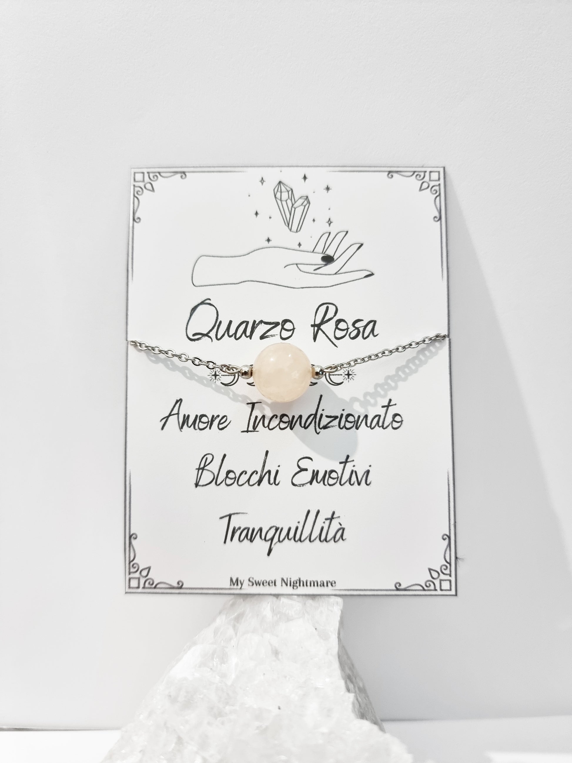 Rose quartz is the stone of love par excellence, it helps to attract our soulmate and opens the heart to unconditional love, not to passionate love but to the pure love that one can feel for a sister or for creation.