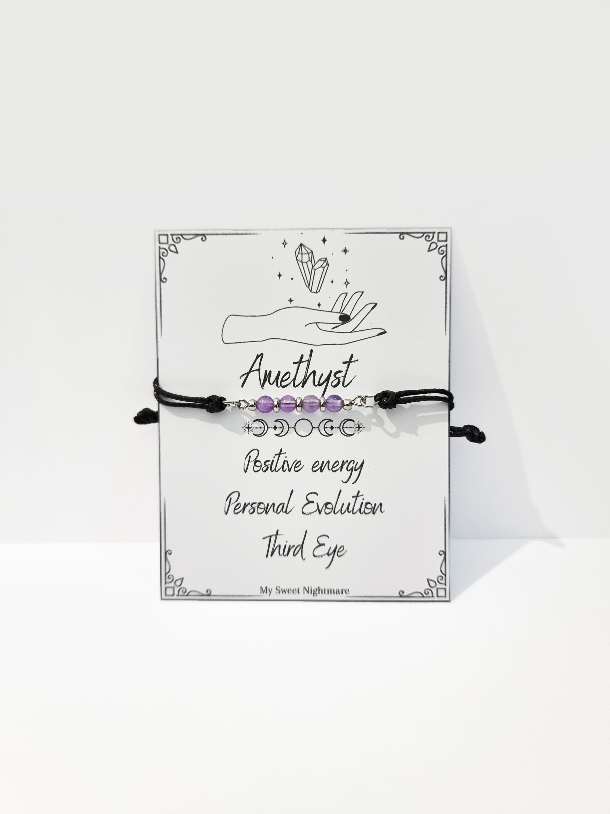 - Bracelet Material: Natural Amethyst, Stainless Steel, Black Cord