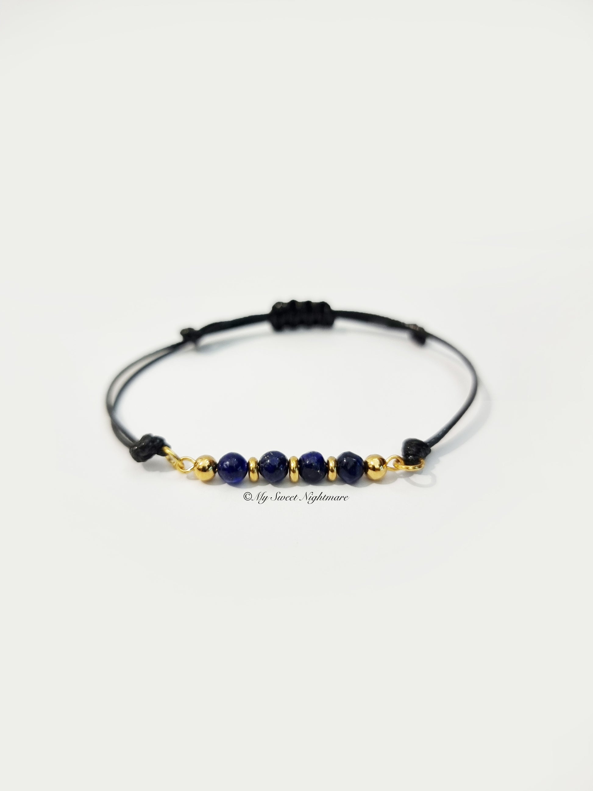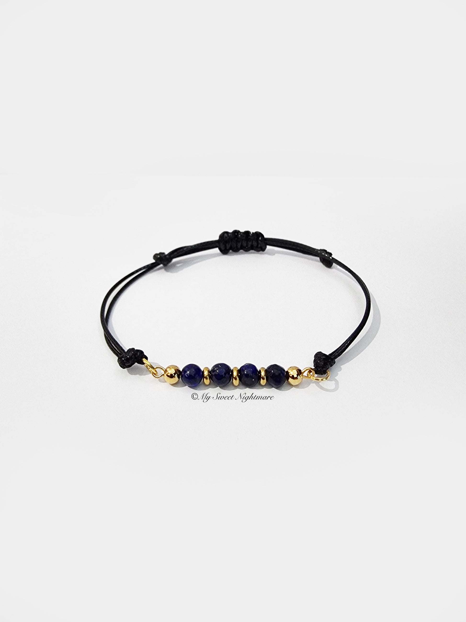 - Bracelet Material: AA Grade Lapis Lazuli, Gold Stainless Steel, Black Cord