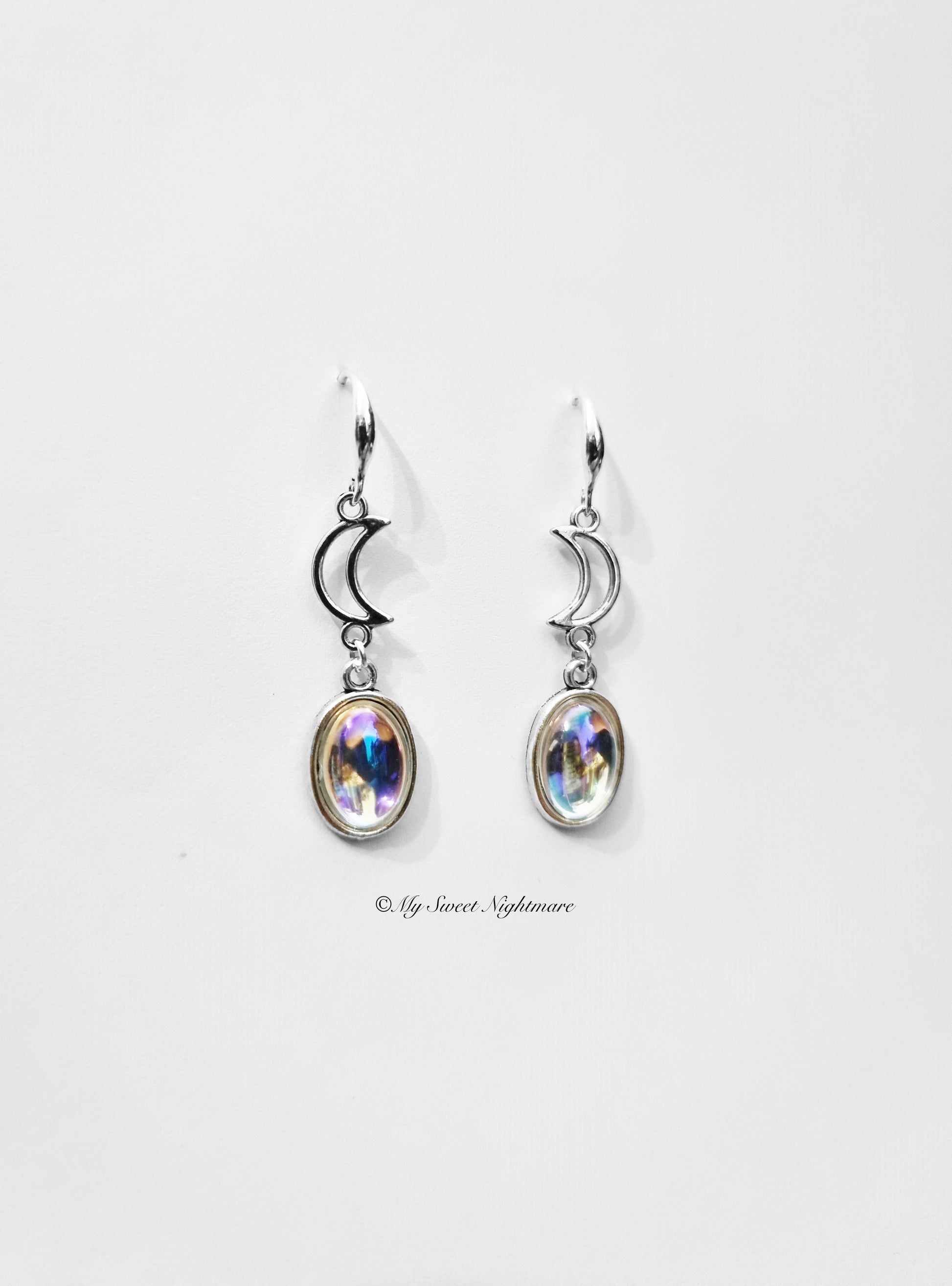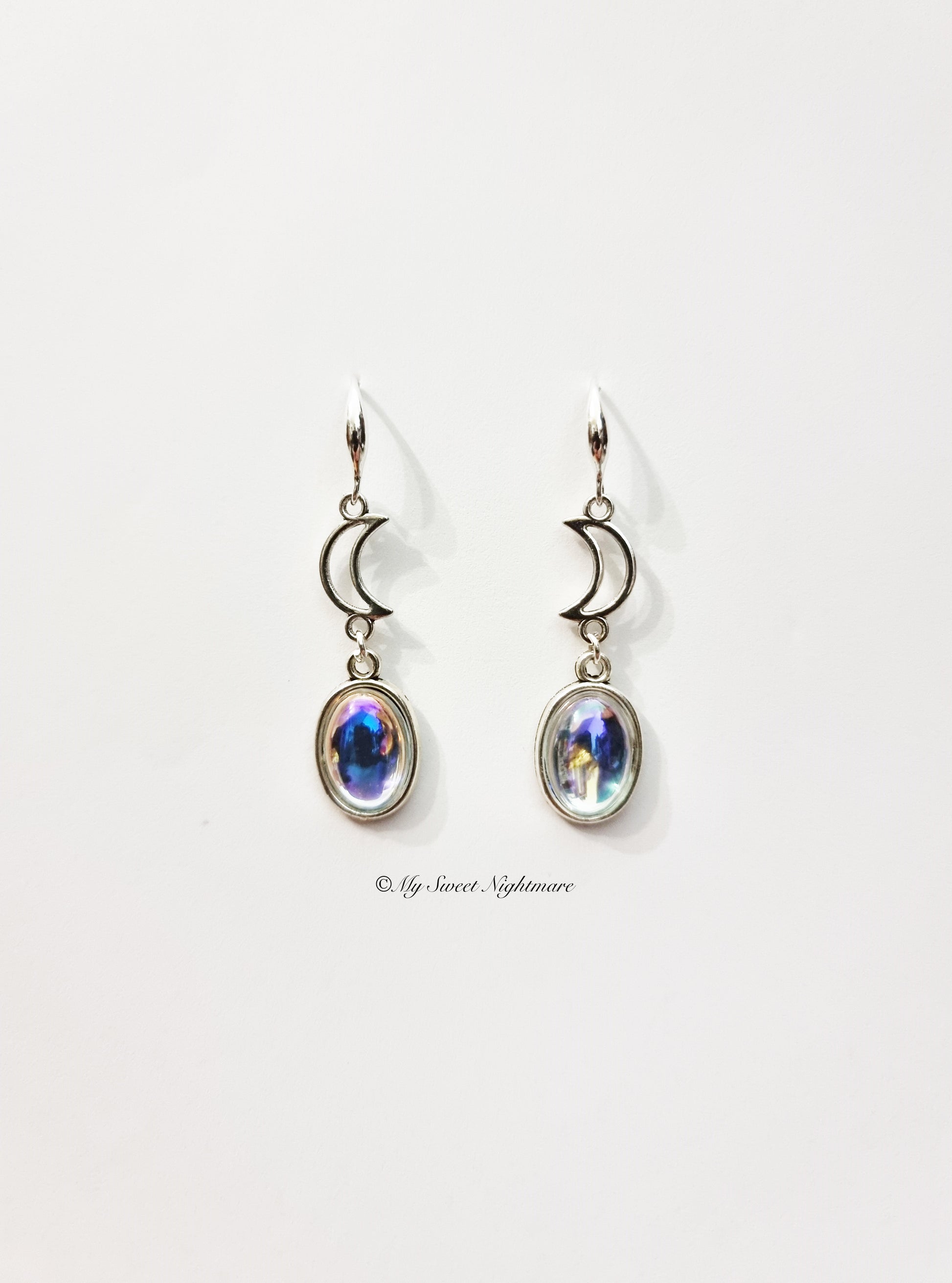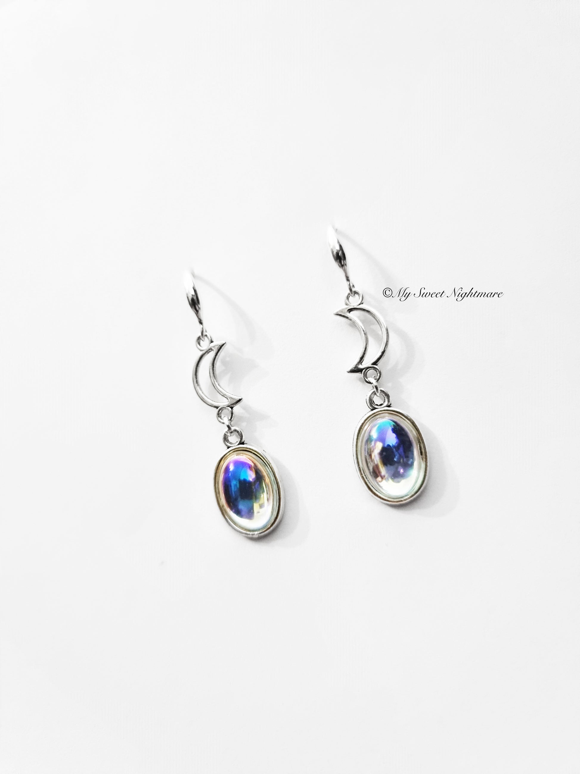 These earrings with pendant moons are really very bright thanks to the resin cabochons with a holographic effect, they change color based on the light giving them an almost magical effect!