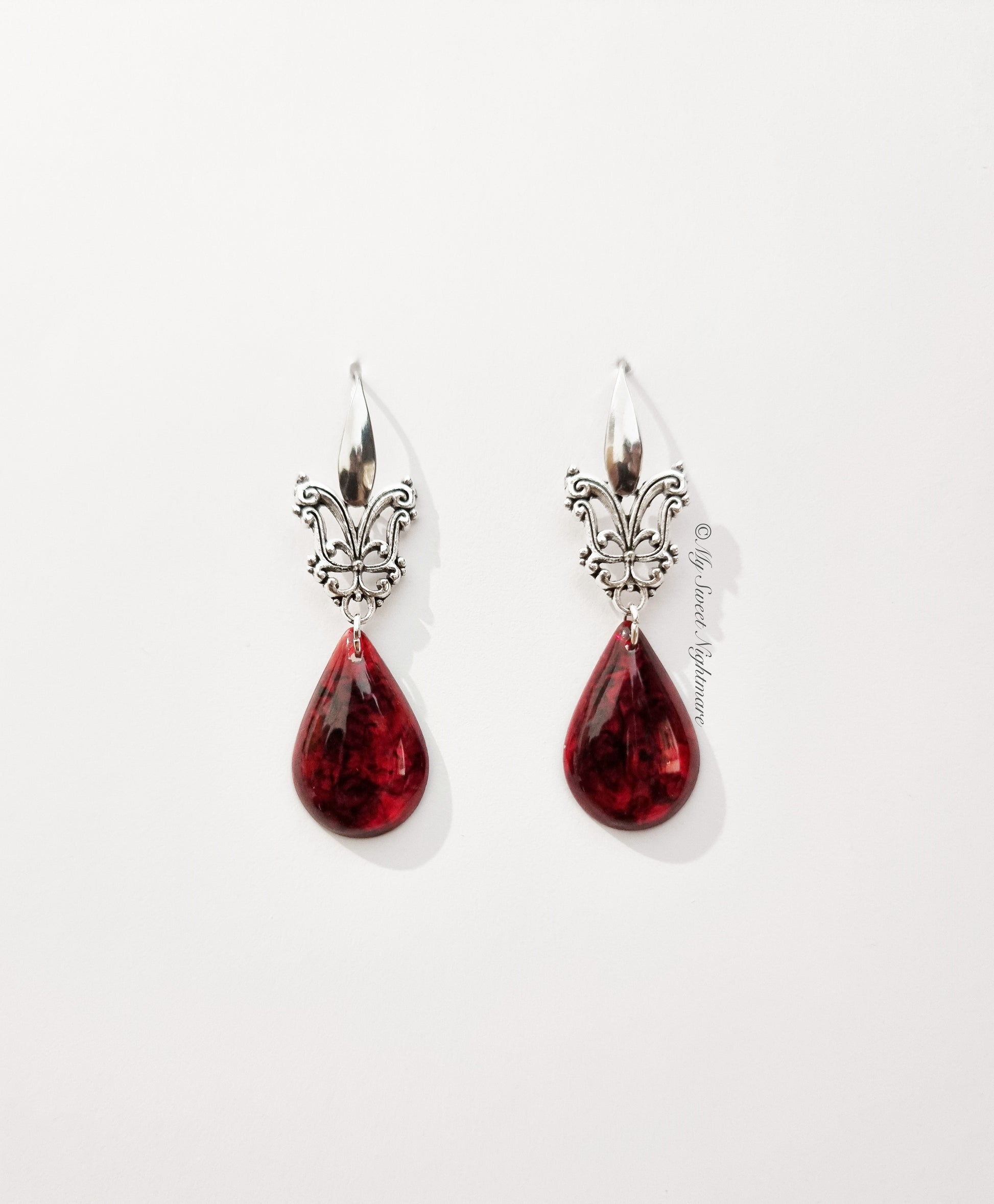 "ALUKA" Orecchini Gotico Vittoriana con gocce effetto Sangue