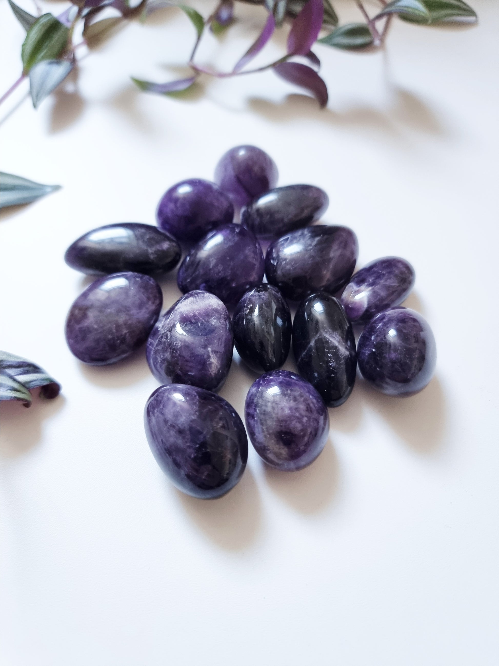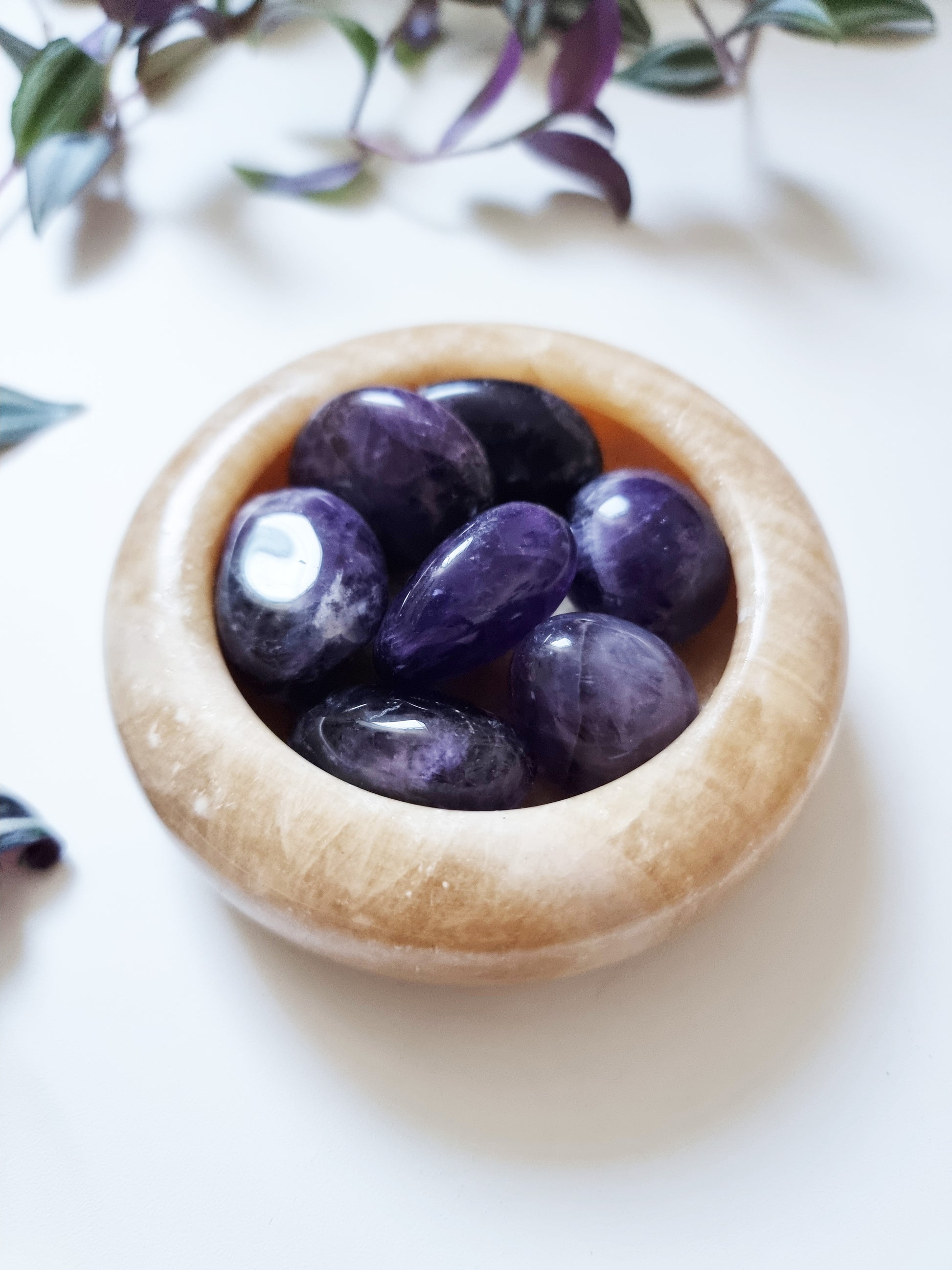 Una piccola pietra di ametista burattata posta sotto il cuscino ci guida nell'esplorazione del nostro inconscio durante la notte e nel ricordare i sogni alla mattina.