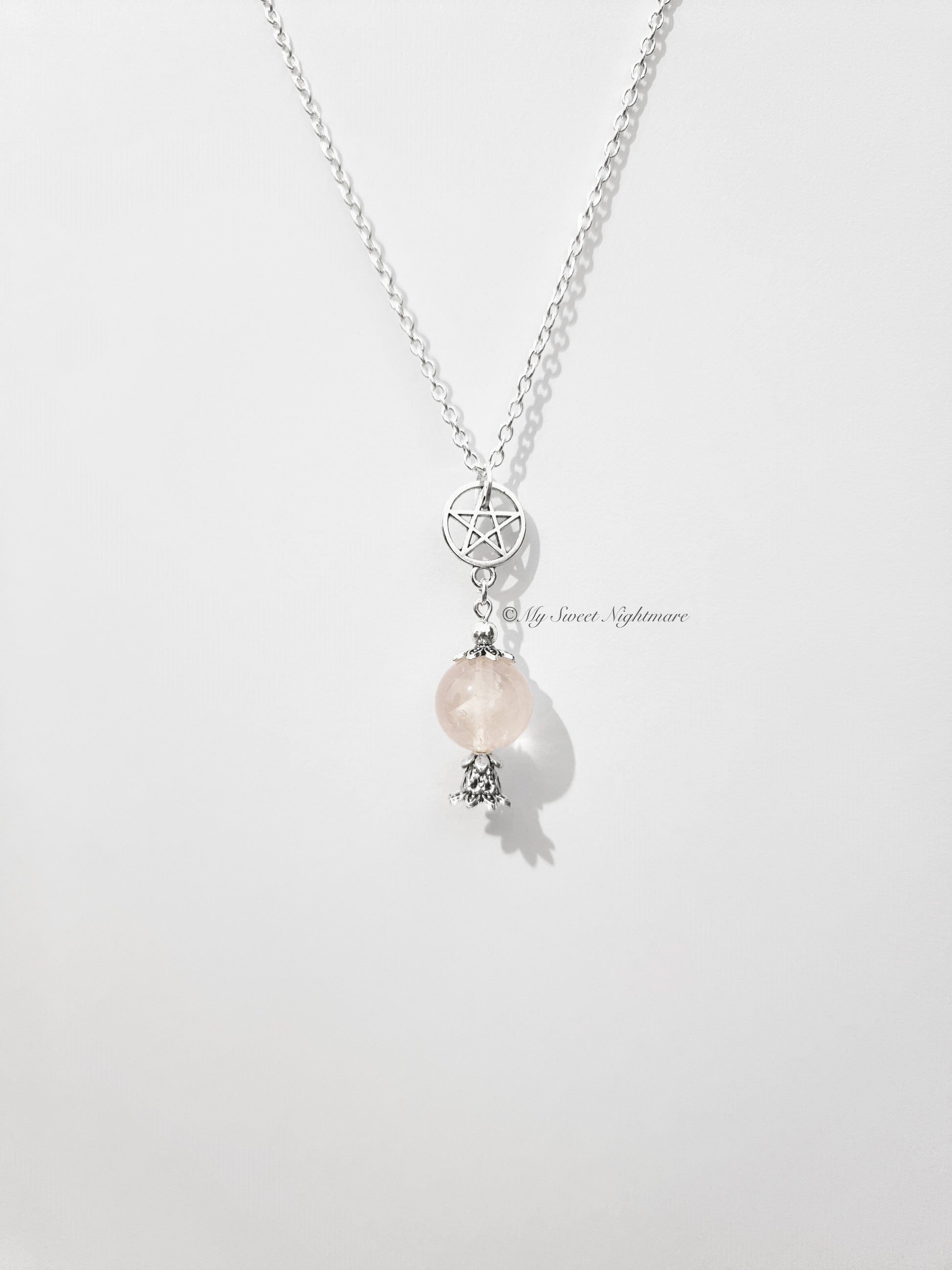 Collana con sfera di cristallo in quarzo rosa e pentacolo
