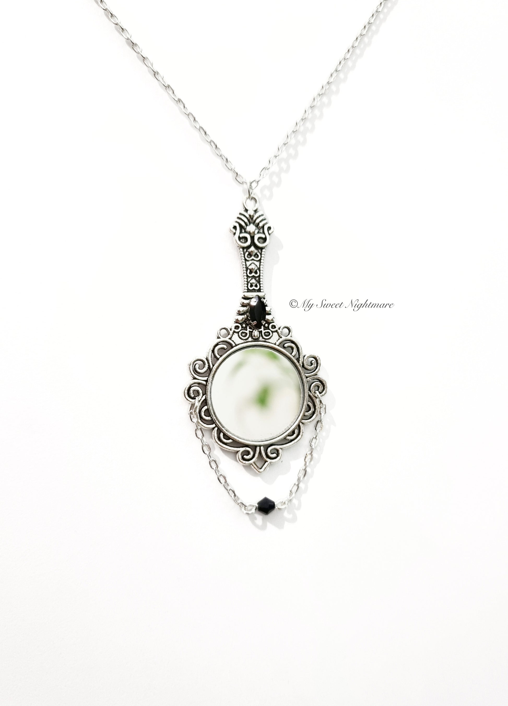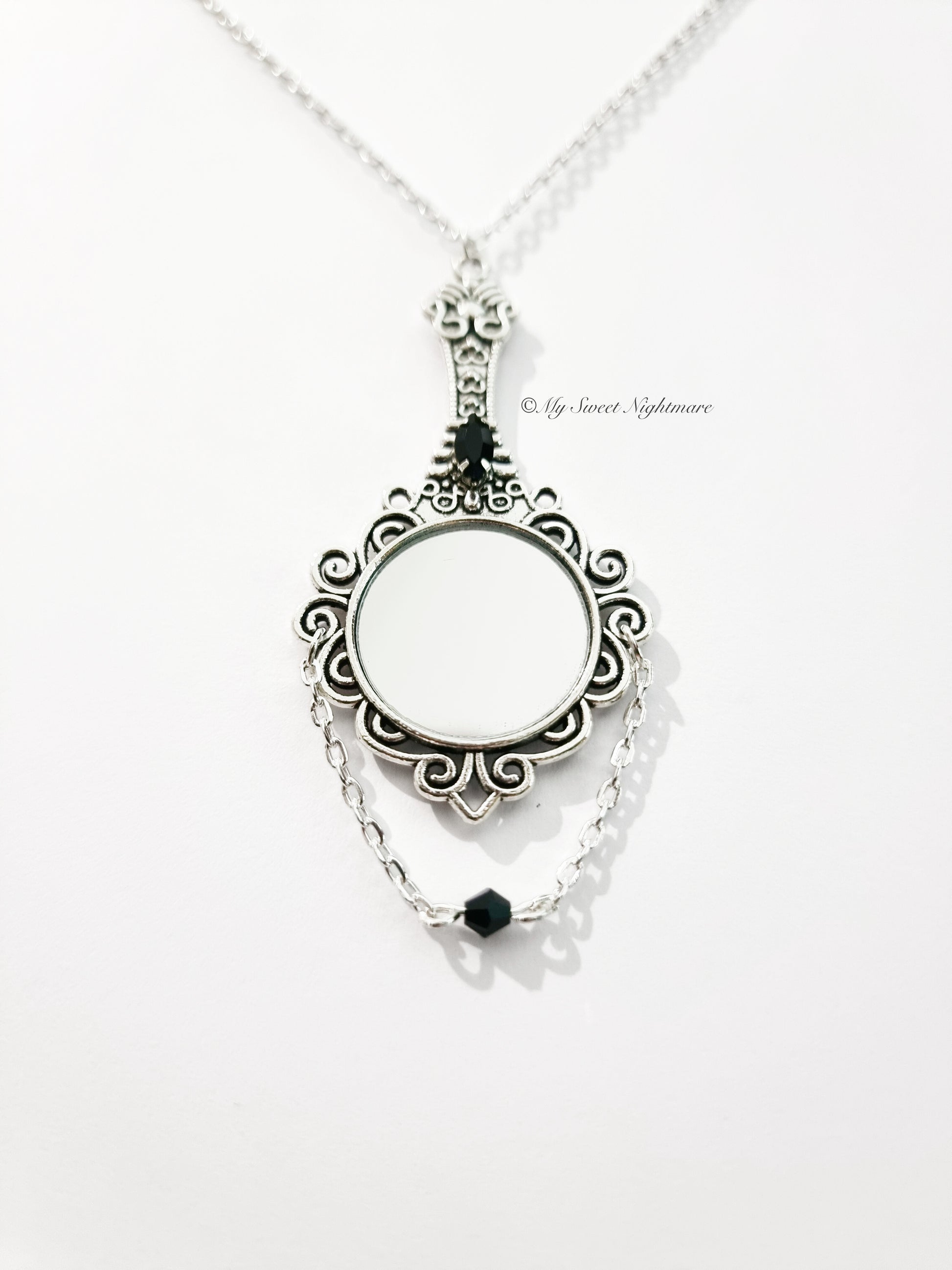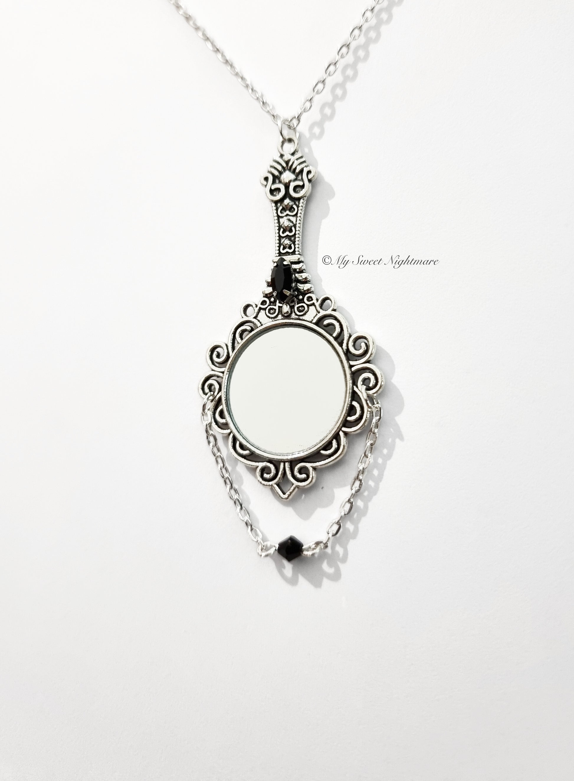 Collana con specchio e cristalli neri