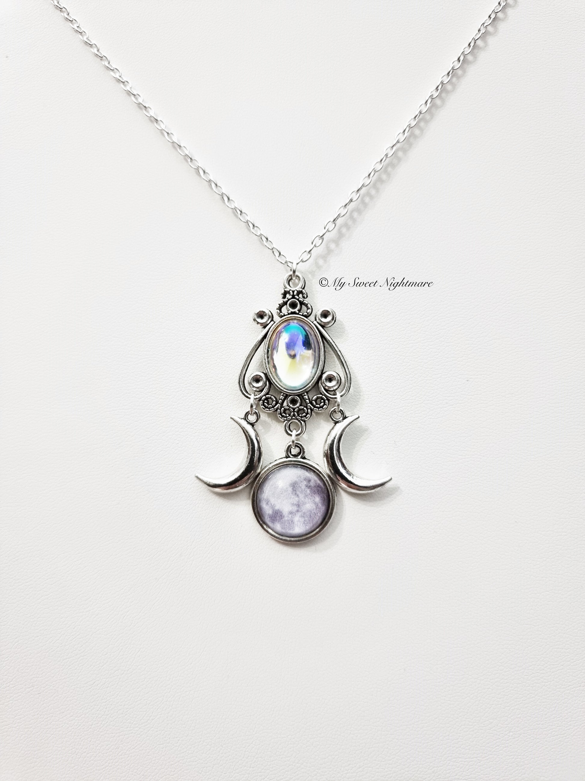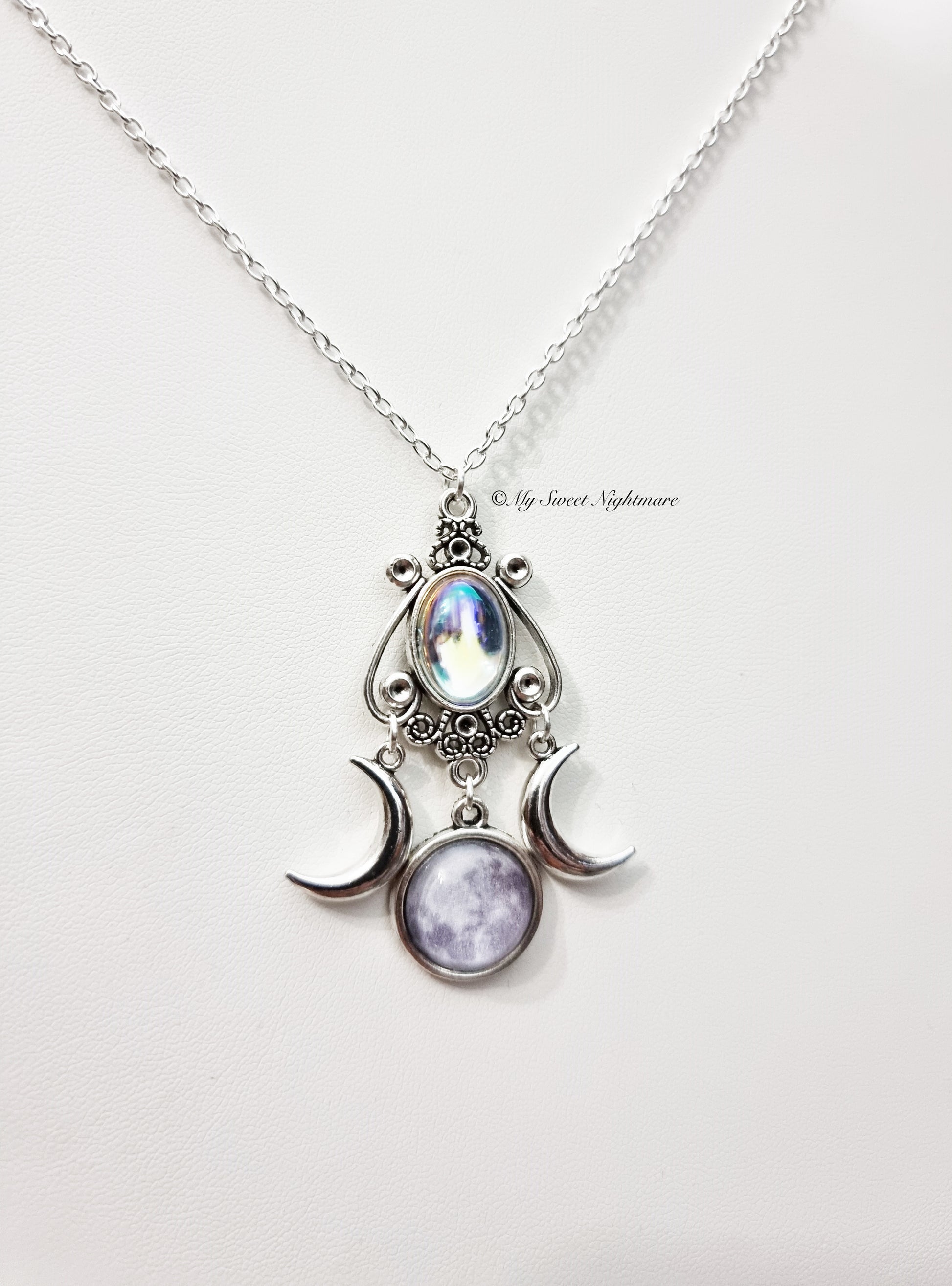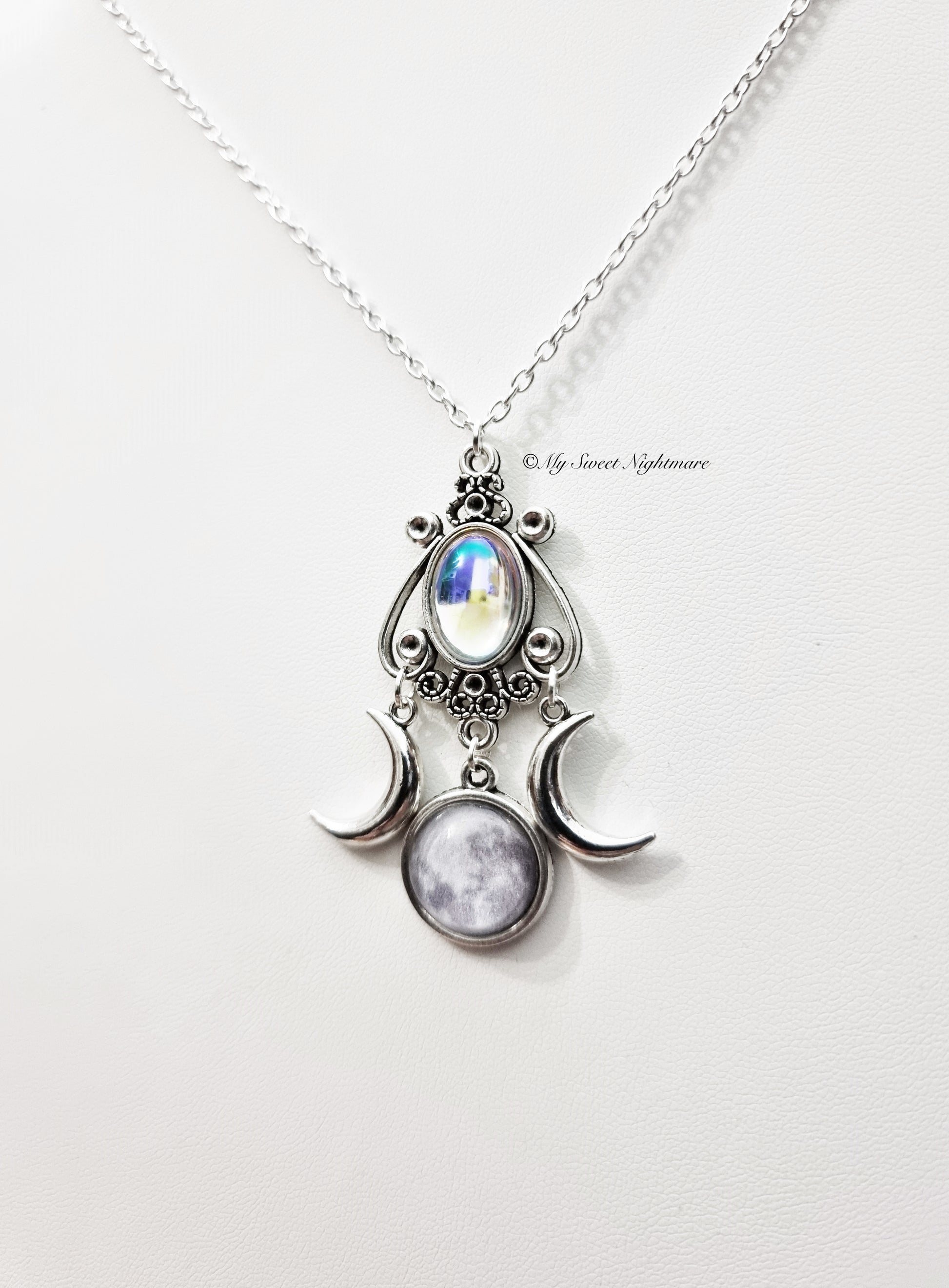 Questo gioiello simboleggia la triplice luna e rappresenta le fasi di crescita femminile, la luna crescente a sinistra rappresenta la fanciulla, la luna piena al centro rappresenta la madre, la luna calante a destra rappresenta la donna anziana.