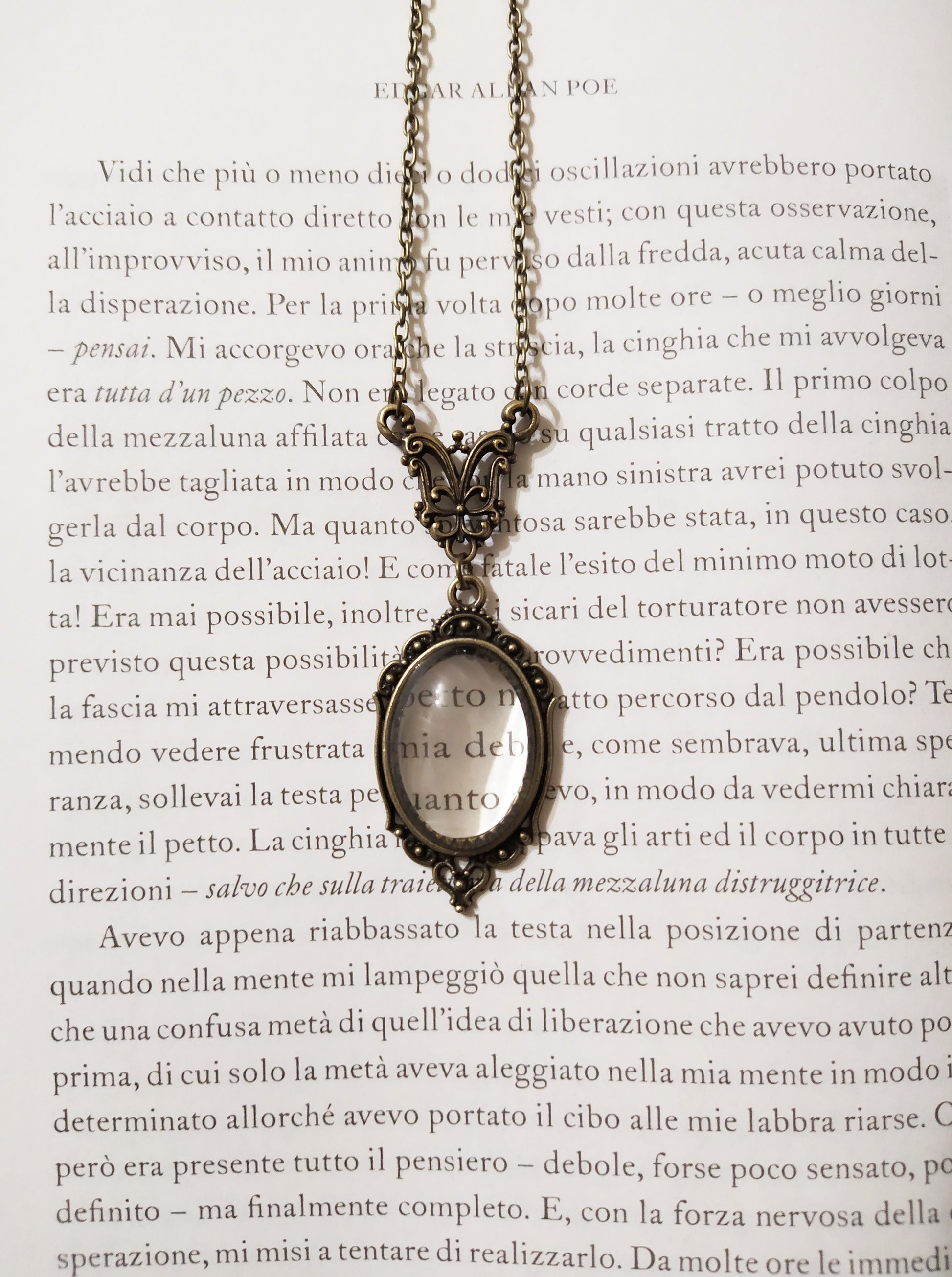 Questa collana con lente di ingrandimento in stile vittoriano è ispirata ai monocoli che venivano utilizzati nell'800. Gli oggetti antichi sono davvero affascinanti, i monocoli erano uno strumento necessario per la lettura di documenti importanti, libri o giornali... ma soprattutto lettere d'amore.