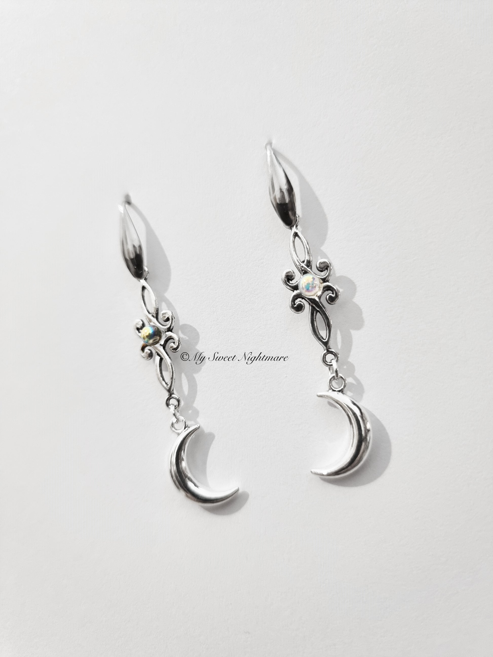 Questi orecchini con lune pendenti sono davvero molto eleganti e raffinati, le piccole sfere hanno un effetto olografico e cambiano colore in base alla luce donandogli un effetto quasi magico!